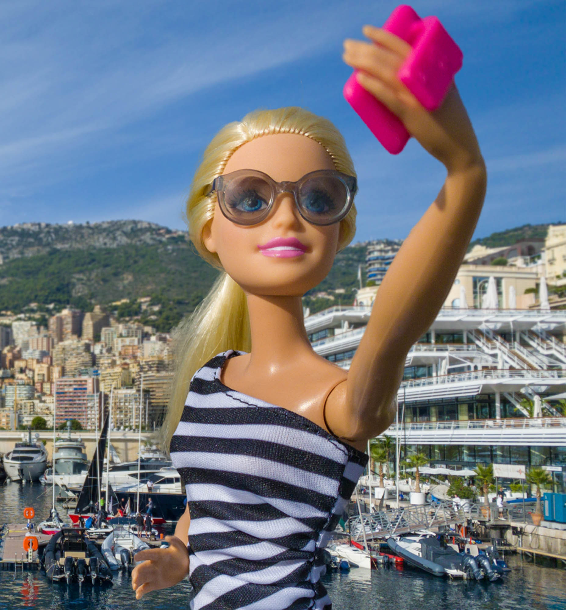 Die konzeptuelle Fotografin Kathrin Hoyos macht Barbie zur Protagonistin ihrer Fotoserie #me, in der sie diesen Zusammenhang der jüngeren Lifestyle-Standards, der Konsumkultur und der Medienbedingungen der paradoxen Social Media Individualität anschaulich macht. So lebendig sie nach Jahrzehnten der Präsenz für uns wirken mag, so bleibt Barbie doch eine Puppe mit vorgeformtem Lächeln, aus Kunststoff und mit steifen Gliedern, die genau weiß: wer heute neidvolle Blicke auf sich ziehen will, kann nicht mehr allein mit Cabrio, Markenaccessoires und langen Beinen im Minirock punkten. Als echtes Jet-Set-Girl sammelt Barbie heute - sei es in Kapstadt, Monte Carlo, Paris, Venedig oder Wien - mit ausgestrecktem Arm in Selfie - Pose Likes und Follower. Die instagramisierten Top-Sights des Globus, die Experiences und Events unseres aufregenden Lebens, sind die Lifestyle-Währung der Gegenwart. Durch Barbie als Darstellungsmittel gelingt der in Südafrika und Monaco lebenden Künstlerin eine durchaus unangenehme Reminiszenz an die mechanische Bereitwilligkeit, mit der wir uns den Prinzipien der Selbstinszenierung unterwerfen und eine Mahnung an die Bestechlichkeit unserer Sinne durch die Darstellung von scheinbar einmaligen Traumstränden, Wahrzeichen, Bergblicken und Begegnungen, für die wir in Wirklichkeit massenhaft und schamlos Schlange stehen müssen.