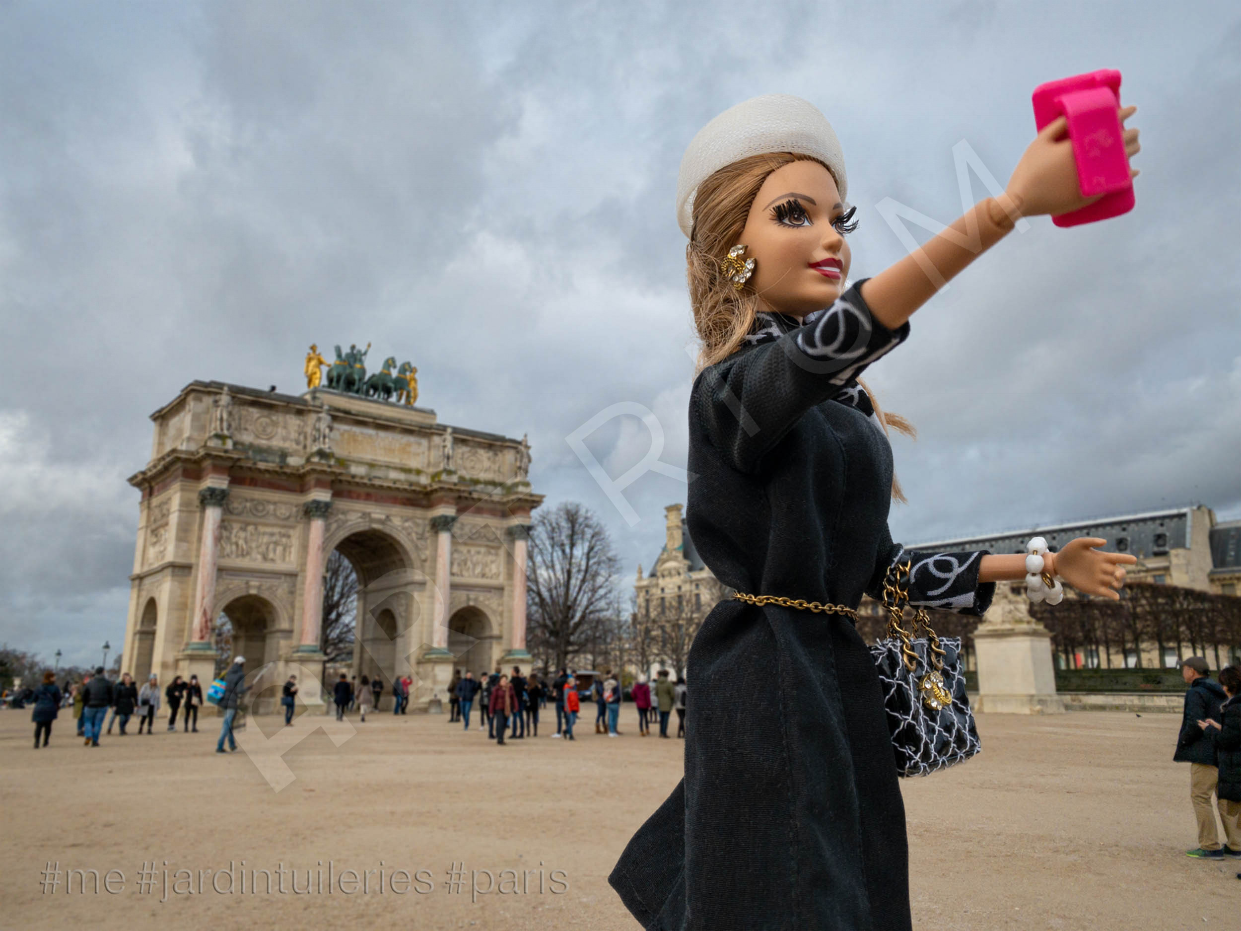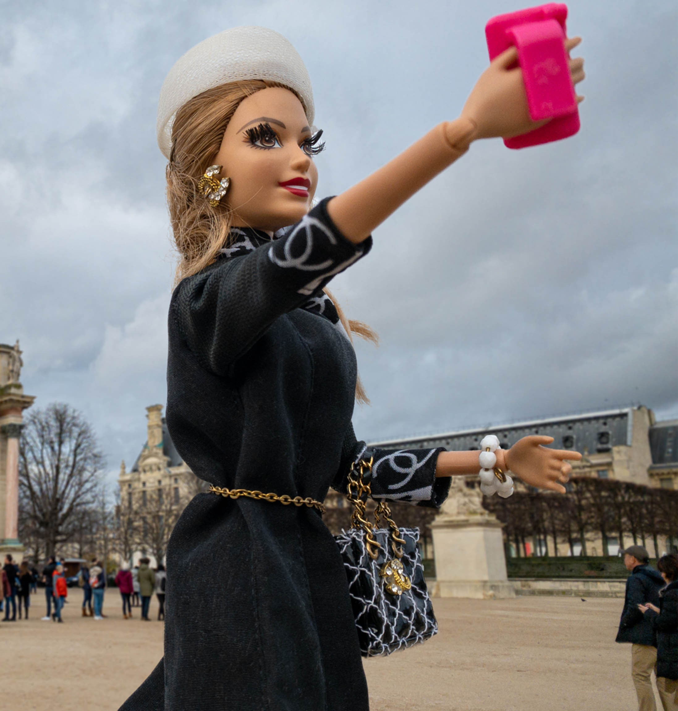 Die konzeptuelle Fotografin Kathrin Hoyos macht Barbie zur Protagonistin ihrer Fotoserie #me, in der sie diesen Zusammenhang der jüngeren Lifestyle-Standards, der Konsumkultur und der Medienbedingungen der paradoxen Social Media Individualität anschaulich macht. So lebendig sie nach Jahrzehnten der Präsenz für uns wirken mag, so bleibt Barbie doch eine Puppe mit vorgeformtem Lächeln, aus Kunststoff und mit steifen Gliedern, die genau weiß: wer heute neidvolle Blicke auf sich ziehen will, kann nicht mehr allein mit Cabrio, Markenaccessoires und langen Beinen im Minirock punkten. Als echtes Jet-Set-Girl sammelt Barbie heute - sei es in Kapstadt, Monte Carlo, Paris, Venedig oder Wien - mit ausgestrecktem Arm in Selfie - Pose Likes und Follower. Die instagramisierten Top-Sights des Globus, die Experiences und Events unseres aufregenden Lebens, sind die Lifestyle-Währung der Gegenwart. Durch Barbie als Darstellungsmittel gelingt der in Südafrika und Monaco lebenden Künstlerin eine durchaus unangenehme Reminiszenz an die mechanische Bereitwilligkeit, mit der wir uns den Prinzipien der Selbstinszenierung unterwerfen und eine Mahnung an die Bestechlichkeit unserer Sinne durch die Darstellung von scheinbar einmaligen Traumstränden, Wahrzeichen, Bergblicken und Begegnungen, für die wir in Wirklichkeit massenhaft und schamlos Schlange stehen müssen.