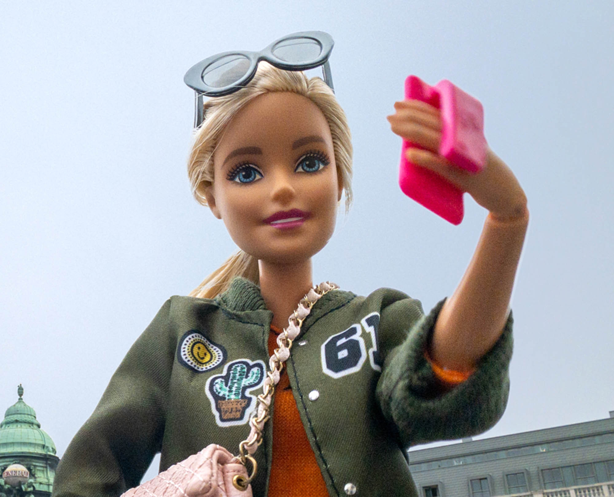 Die konzeptuelle Fotografin Kathrin Hoyos macht Barbie zur Protagonistin ihrer Fotoserie #me, in der sie diesen Zusammenhang der jüngeren Lifestyle-Standards, der Konsumkultur und der Medienbedingungen der paradoxen Social Media Individualität anschaulich macht. So lebendig sie nach Jahrzehnten der Präsenz für uns wirken mag, so bleibt Barbie doch eine Puppe mit vorgeformtem Lächeln, aus Kunststoff und mit steifen Gliedern, die genau weiß: wer heute neidvolle Blicke auf sich ziehen will, kann nicht mehr allein mit Cabrio, Markenaccessoires und langen Beinen im Minirock punkten. Als echtes Jet-Set-Girl sammelt Barbie heute - sei es in Kapstadt, Monte Carlo, Paris, Venedig oder Wien - mit ausgestrecktem Arm in Selfie - Pose Likes und Follower. Die instagramisierten Top-Sights des Globus, die Experiences und Events unseres aufregenden Lebens, sind die Lifestyle-Währung der Gegenwart. Durch Barbie als Darstellungsmittel gelingt der in Südafrika und Monaco lebenden Künstlerin eine durchaus unangenehme Reminiszenz an die mechanische Bereitwilligkeit, mit der wir uns den Prinzipien der Selbstinszenierung unterwerfen und eine Mahnung an die Bestechlichkeit unserer Sinne durch die Darstellung von scheinbar einmaligen Traumstränden, Wahrzeichen, Bergblicken und Begegnungen, für die wir in Wirklichkeit massenhaft und schamlos Schlange stehen müssen.