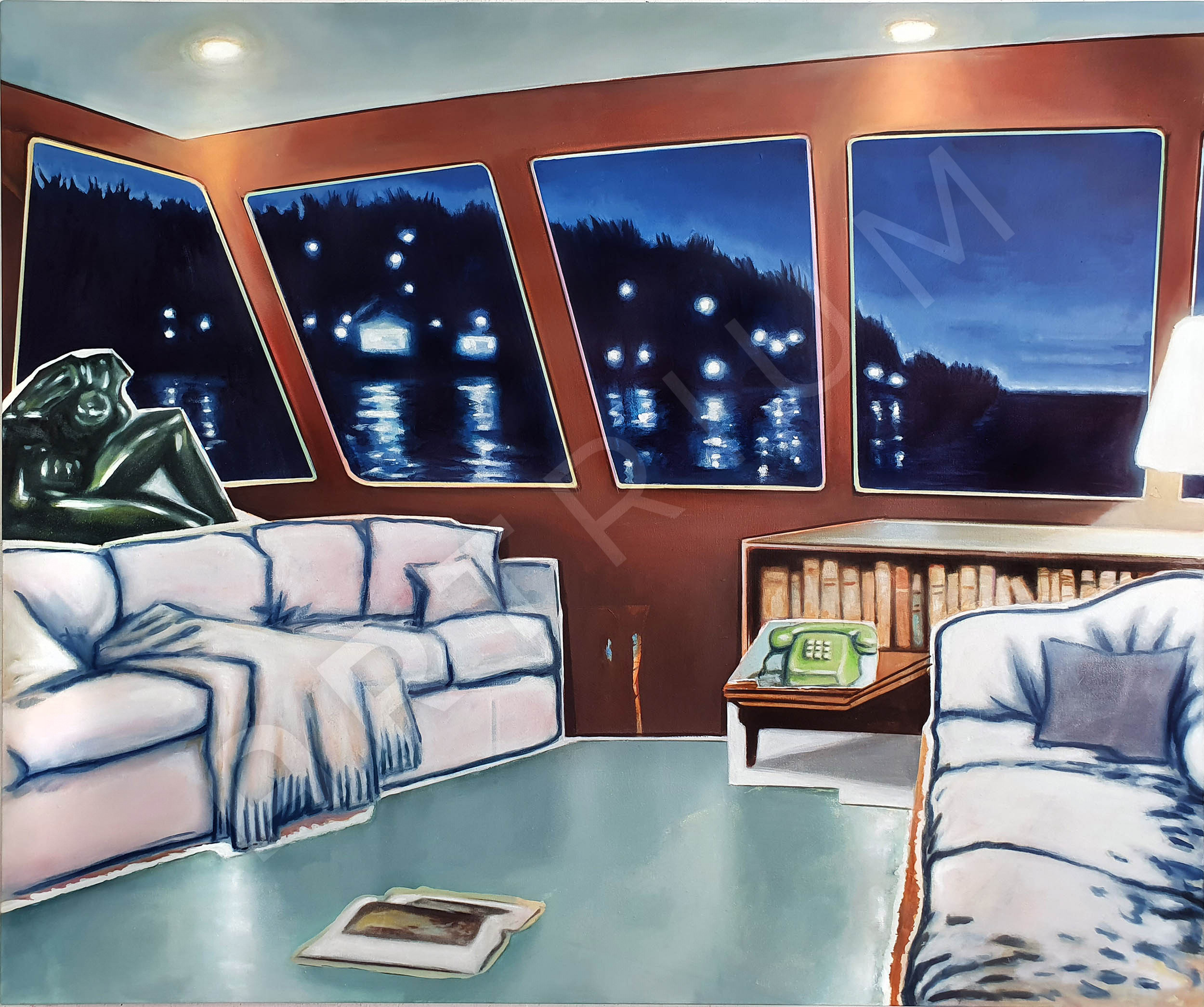 In einem von Stress geplagten Alltag und einer immer dynamischer werdenden Gesellschaft, in deren Zentrum der Fortschritt und die Technik steht, sehnt man sich zunehmend nach einem Gegenbild, nach Orten, an denen die Zeit still zu stehen scheint. Seine Ölbilder stellen ein Ideal und eine Idylle dar, in der sich der Wunsch nach Einfachheit und Problemlosigkeit wiederspiegelt. Die Arbeiten entsprechen einem Konstrukt, das in natürlicher Form gar nicht existiert. Es geht nicht nur darum Orte wieder aufleben zu lassen und in einer neuen Form darzustellen, sondern idealisierte Vorstellungen, die von unserem Umfeld hervorgerufen werden, zu hinterfragen. In seinen Arbeiten zelebriert er und hinterfrage die Geschichte des Mediums. Die Arbeiten zeigen ein Bewusstsein für die fortdauernde Bedeutung der Malerei als Kommunikationsmittel für die Art und Weise, wie wir unser tägliches Leben erleben. In den Arbeiten zeigt Cotroneo eine starke Mischung aus Atmosphäre und Zwischenfall, Alleinsein und Sinnhaftigkeit. Die Malereien stellen Situationen als psychologische Ereignisse dar und beschreiben Reisen, Transit und Orte wie aus einer existenziellen Perspektive. Ihre Vision ist stark, fragend, distanziert, ihr Empfinden von Ort und Zeit sind mit jenen des modernen Reisenden vergleichbar, der zugleich isoliert, staatenlos, leidenschaftslos und doch verletzlich ist. Zufälligkeit und Stase bestimmen die Stimmung. Farbe, Form und Zusammensetzung sind angespannt, zielstrebig und beschreiben Situationen des „geöffneten Bewusstseins“. Dichtung und Flüchtigkeit präsidieren, die Dimensionen erhöhter Momente werden im Medium der Malerei transkribiert. Durch die entstehende „Flächigkeit“, die zunächst klar, plakativ und oft farbenfroh wirkt, wird versucht mehr psychologischen Raum entstehen zu lassen, die der Betrachter für eigene Assoziationen nützen soll.