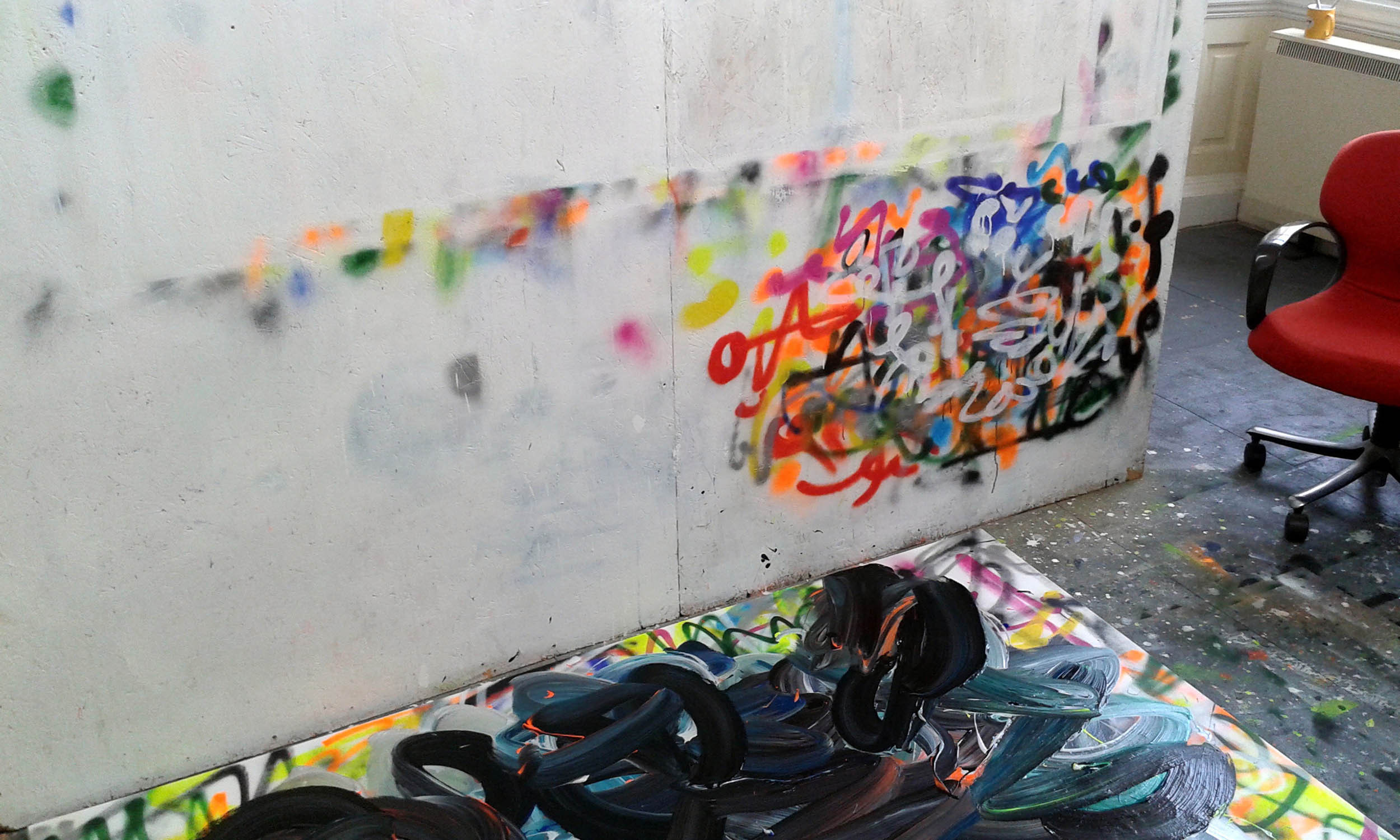 Acryl und Sprayfarbe auf Leinwand