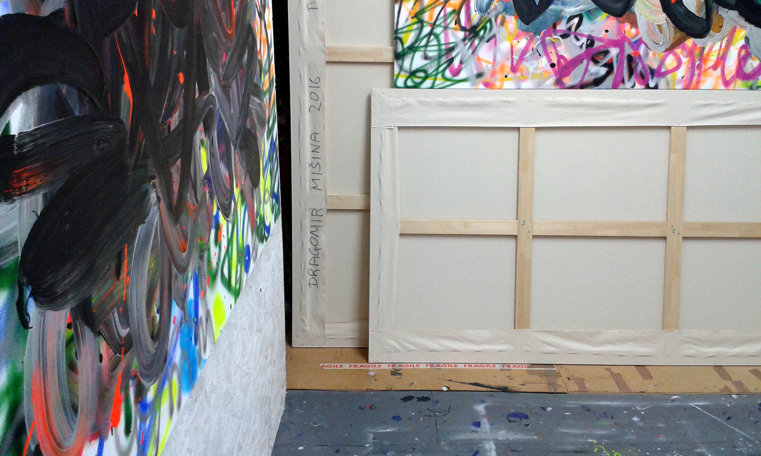 "Seine raumgreifenden Gemälde sind eine Erkundung von Farbe, Textur und dem Prozess der Malerei selbst. Sie befassen sich mit dem empfindlichen Gleichgewicht von Chaos und Ordnung, kombinieren Überlegung und Zufall und funktionieren wie ein Diagramm aus Schichten, Markierungen und Farben, die Tore zu imaginären Welten schaffen. Nachdem er Kroatien verlassen hatte, schloss Dragomir 2012 sein Studium der Malerei an der Bath School of Art and Design, Bath Spa University, Großbritannien, mit einem First in Fine Art Painting ab. Seitdem arbeitet Dragomir im 44AD Studio, wo er ein proaktives Mitglied der 44AD Kunstgemeinschaft ist. Dragomirs Arbeiten wurden auf zahlreichen nationalen und internationalen Ausstellungen gezeigt und in Büchern und Zeitschriften veröffentlicht. Anfang 2014 wurde Dragomir aus 6.440 Einsendungen ausgewählt, um Arbeiten für die Saatchi Art-Ausstellung "In Glorious Colour" in London zu zeigen. Seine Arbeiten sind auch Teil des laufenden Projekts Saatchi Gallery Screen. In der Ausgabe 2016 wurden Dragomirs Arbeiten ausführlich in The New Collectors Book, einer jährlichen Kunstpublikation in New York, veröffentlicht. Dragomir war der Gewinner des angesehenen Evolver Wessex Artist Award bei der 161. jährlichen offenen Ausstellung der RWA in Bristol und wurde als einer der 10 Finalisten für den Bridgeman Studio Award 2018 ausgewählt. Dragomirs Gemälde befinden sich in privaten Sammlungen in Europa, Asien, Nordamerika (einschließlich der Agnes Gund Collection) und Südamerika. Dragomirs Arbeiten wurden von der Bath Spa University erworben und sind nun Teil ihrer ständigen Sammlung."