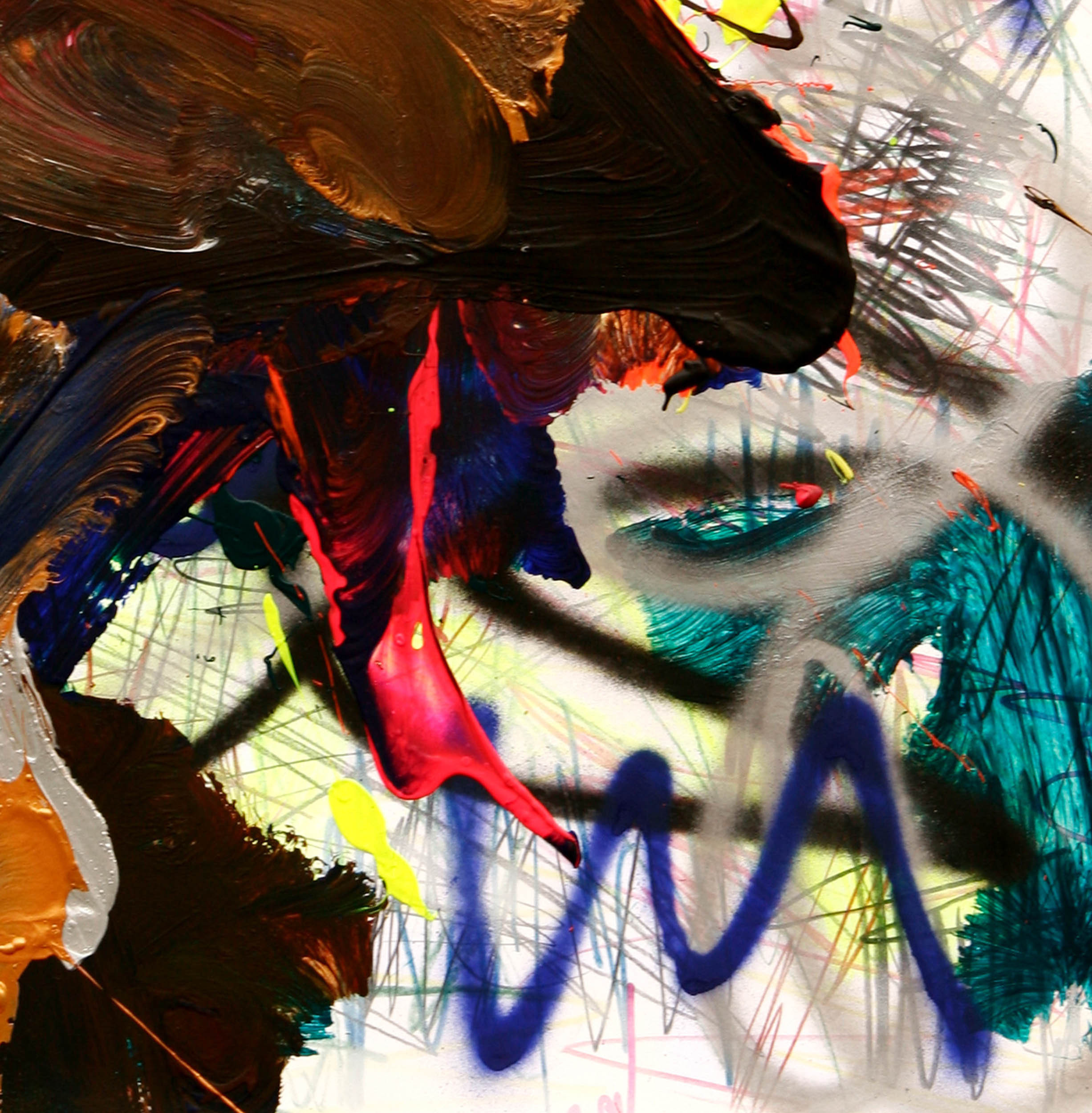 Acryl, Sprühfarbe und permanent Marker auf Papier