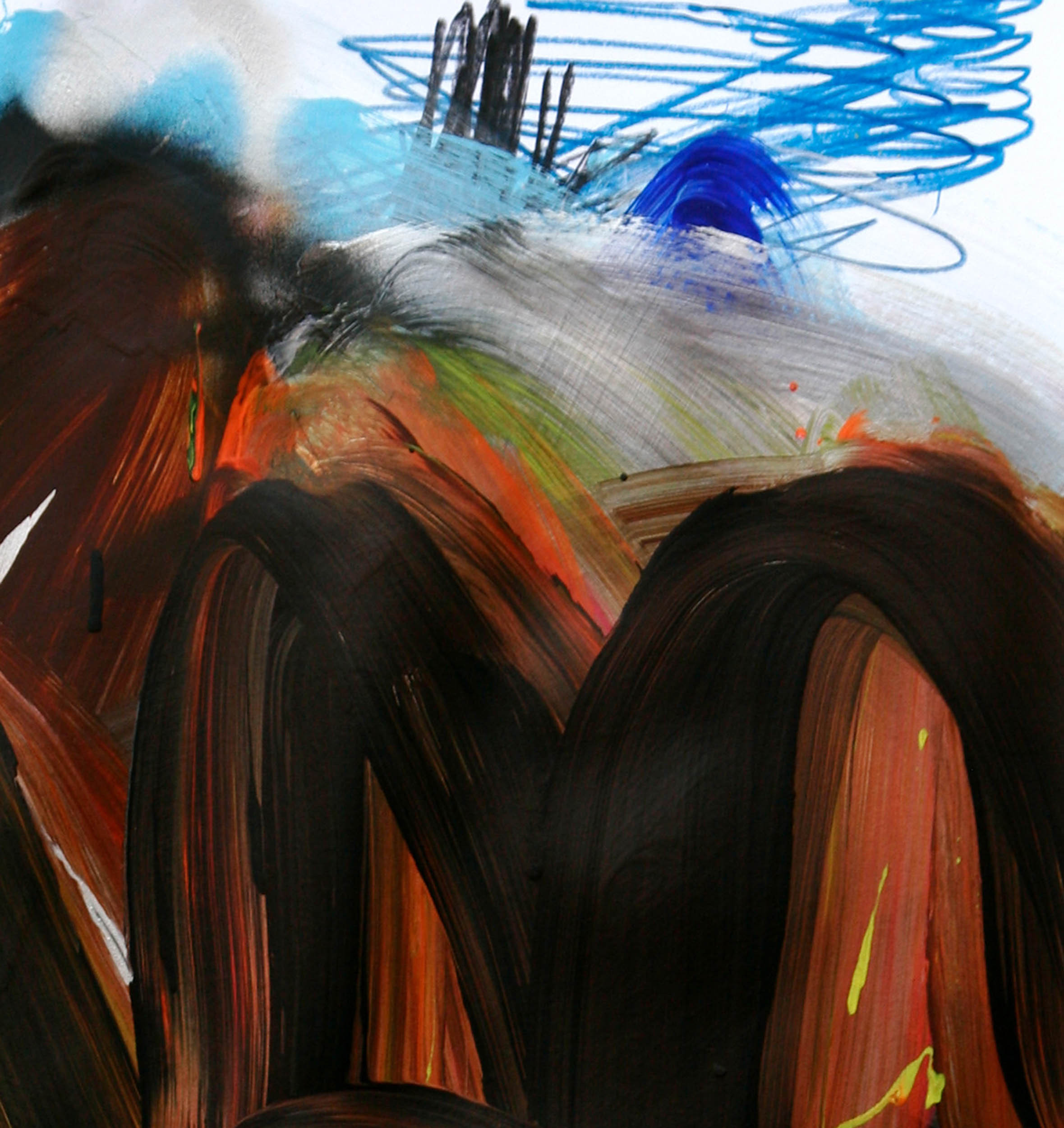 Acryl, Sprühfarbe und Bleistfit auf Papier