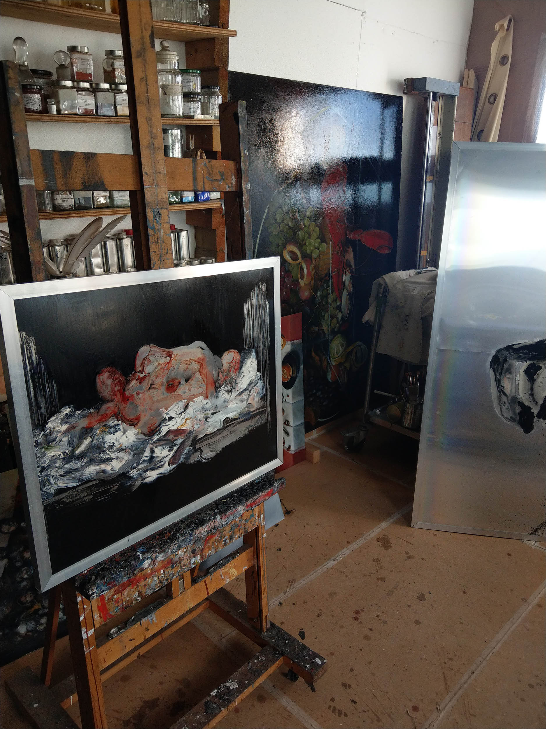 "Ich versuche, die Person einzufangen, die sich in diesem Moment in der Farbe offenbart." (Pepijn Simon) Mit dieser Aussage drückt Pepijn Simon seine Entscheidung aus, den Menschen in den Mittelpunkt zu stellen, ihn aber nicht von außen zu betrachten, sondern ihn von innen zu erforschen. Das Spezifische am Menschen ist seine Verbindung mit dem Bewusstsein des Todes, was den physischen und anatomischen Aspekten in seinem Werk Tiefe verleiht. In Simons Werk findet ein sehr interessantes Spiel zwischen dem Inneren und dem Äußeren statt. Die Das Innere ist der Teil, der fühlt, liebt, fürchtet, reflektiert und urteilt, das Äußere ist das Organische und Materielle, das reflektiert, sich ausdehnt, reißt und zerfällt. Die neue Verwendung des kalten und sterilen Aluminiums kühlt und reflektiert unsere eigenen Bilder. Einige Gemälde zeigen Gesichter und Körper, die zerrissen, zerschnitten und verstümmelt wurden und den menschlichen, lebendigen Aspekt des Körpers zu zerstören scheinen. Dies verstört den Betrachter, da es eine gequälte, statische Darstellung für den Betrachter erzeugt und eine einhellige Erinnerung an den Tod und einen Blick in das Unterbewusstsein in Form von gesichtslosem Fleisch schafft. Die negative Reaktion oder der Schock des Betrachters besteht darin, dass er glaubt, er sei einem visuellen Angriff des Künstlers ausgesetzt. In Wahrheit ist die Ablehnung und Negativität jedoch das Ergebnis eines unterbewussten Bewusstseins und nicht einer bewussten Verleugnung.