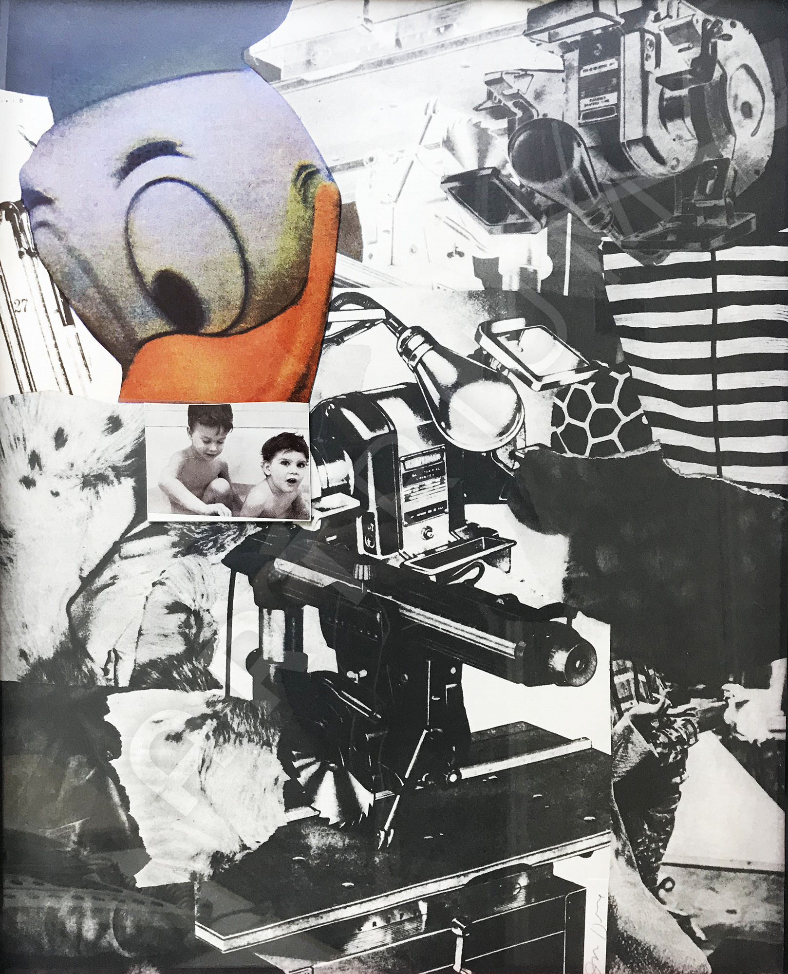 Silkscreen, collage on cardboard