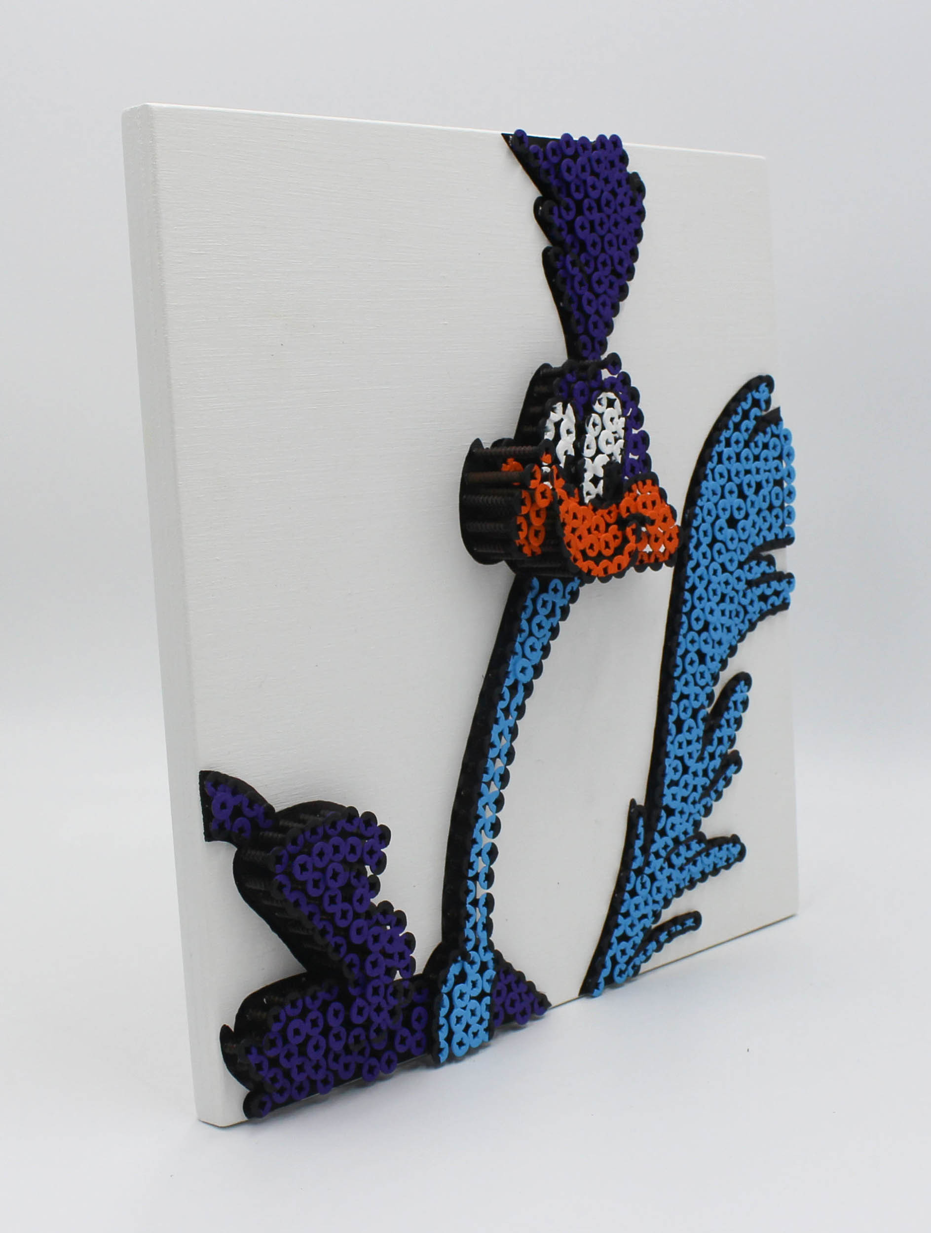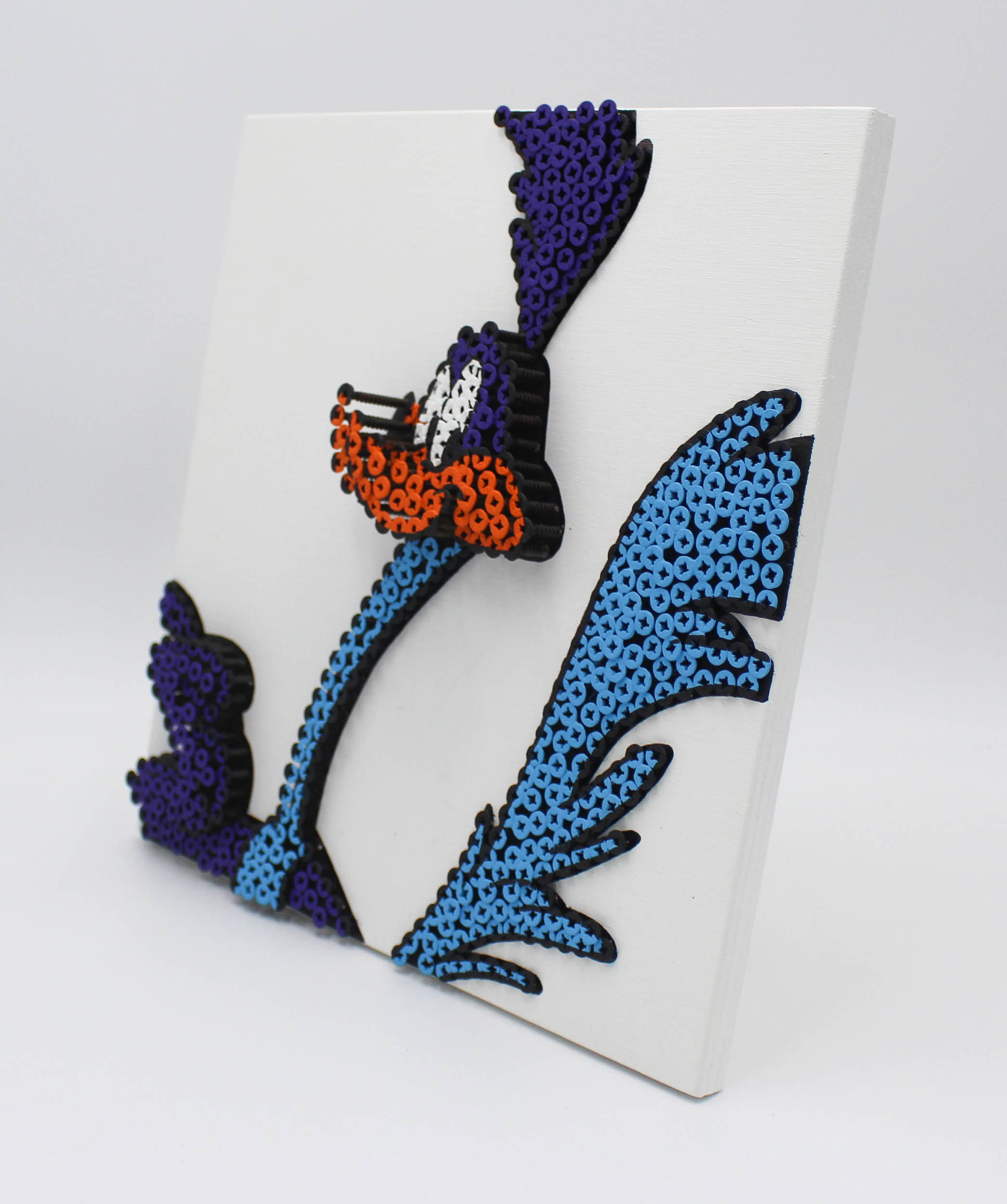 Alessandro Padovan (born in 1983), self-taught and graduate Mechanical Expert, began his art by forming an artistic duo called Drill Monkeys Art Duo in 2012 and then continued independently from January 2017. It is an adventure that saw him operate with an alternative technique: self-tapping screws and acrylic paint on panel. A path that fits into the need to give three dimensionality to the works and to ironically cross over between sculpture and painting. The screws in fact are placed at different depths and form different planes through which the figures take shape. The Screw Art technique is a not very well known technique, in the last 7 years Alessandro has managed to be present in Galleries, Auction Houses, Art Fairs in Italy and abroad and at important Charity Gala Events. The originality of this work is obviously the technique and the three-dimensional effect that is obtained by screwing very common screws in various depths that, by painting on them, transforms into a contemporary sculptural and pictorial work.