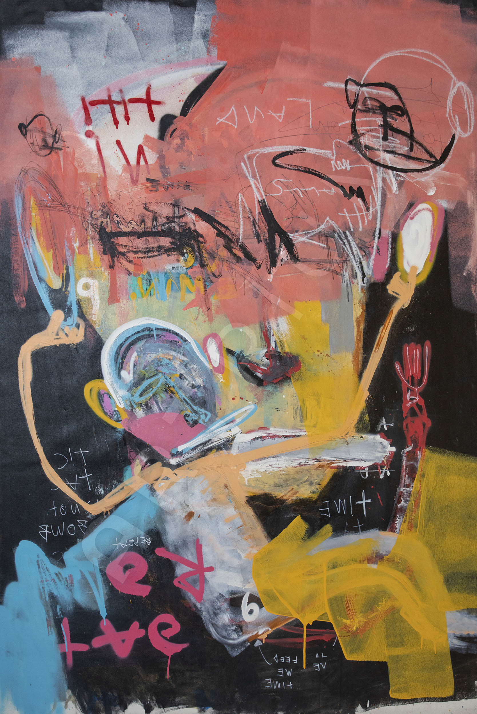Acrylic, Pastels, Oil, Graffiti and Spray on canvas