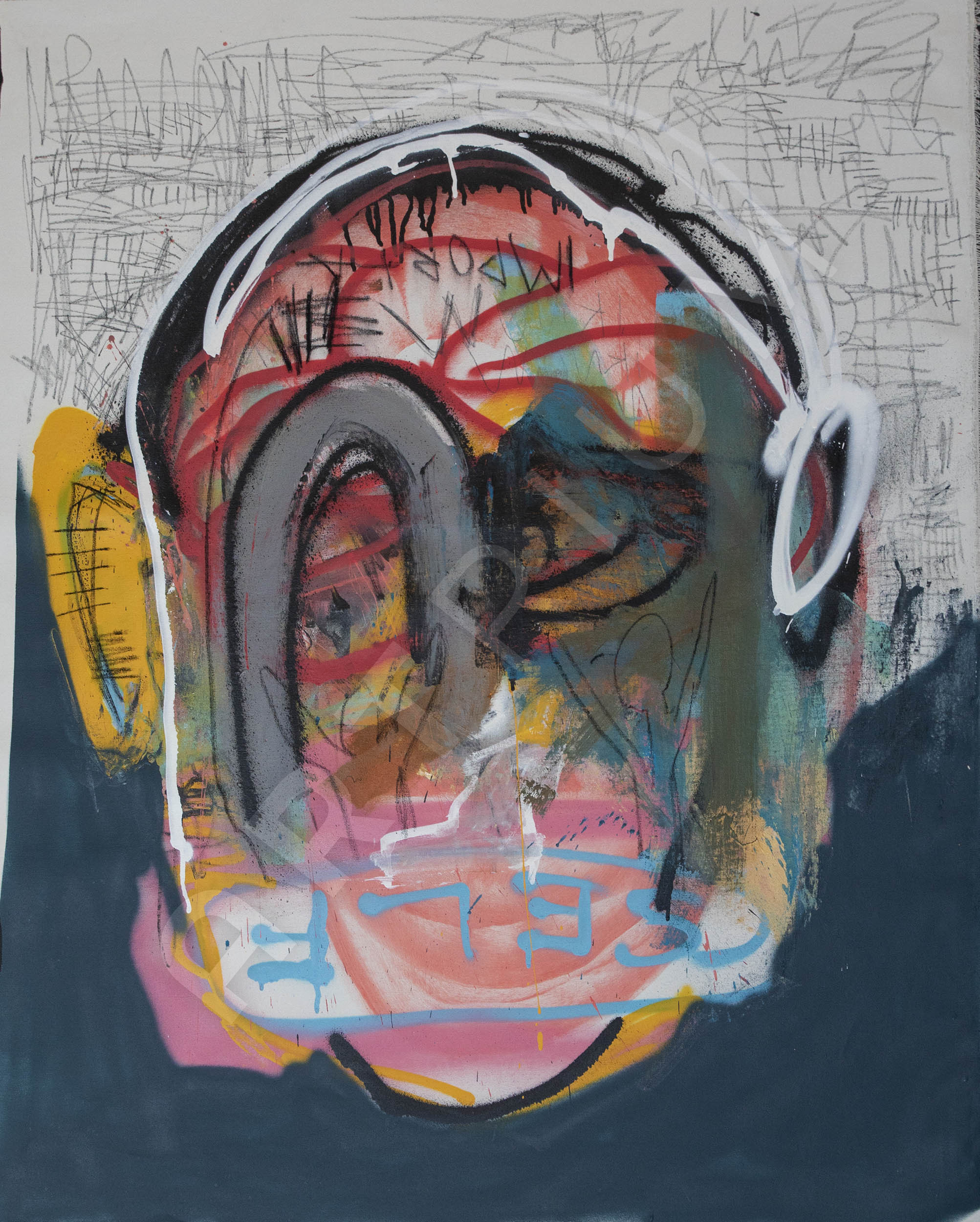 Acryl, Öl, Kreide, Graffiti, Spray auf Leinwand
