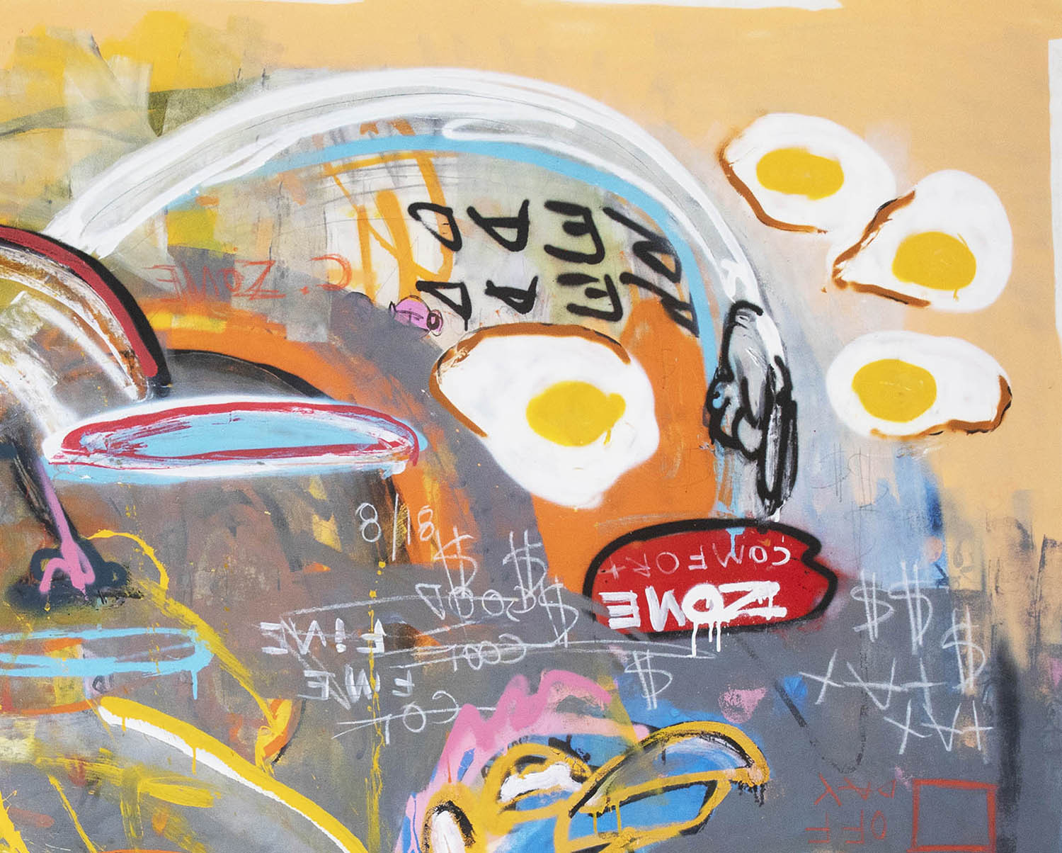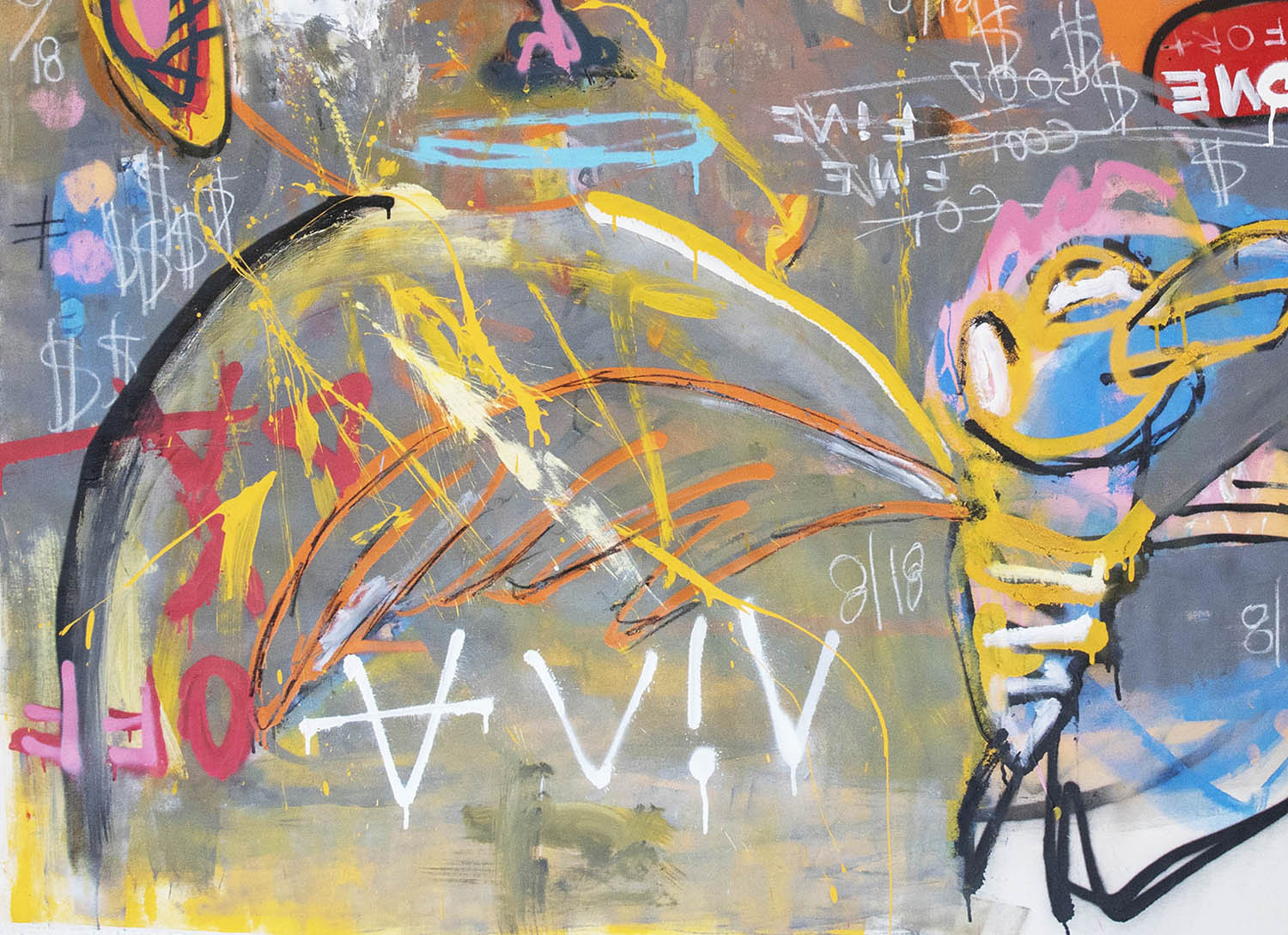 Acryl, Öl, Kreide, Graffiti, Spray auf Leinwand