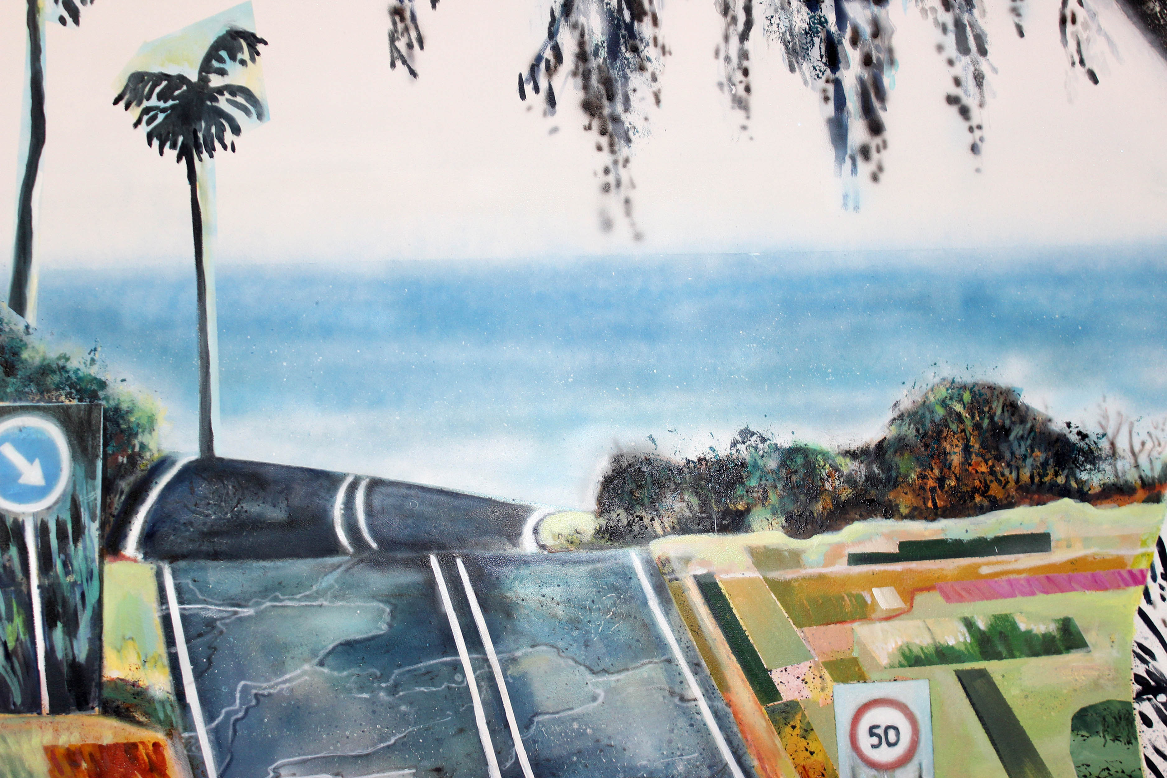 In einem von Stress geplagten Alltag und einer immer dynamischer werdenden Gesellschaft, in deren Zentrum der Fortschritt und die Technik steht, sehnt man sich zunehmend nach einem Gegenbild, nach Orten, an denen die Zeit still zu stehen scheint. Seine Ölbilder stellen ein Ideal und eine Idylle dar, in der sich der Wunsch nach Einfachheit und Problemlosigkeit wiederspiegelt. Die Arbeiten entsprechen einem Konstrukt, das in natürlicher Form gar nicht existiert. Es geht nicht nur darum Orte wieder aufleben zu lassen und in einer neuen Form darzustellen, sondern idealisierte Vorstellungen, die von unserem Umfeld hervorgerufen werden, zu hinterfragen. In seinen Arbeiten zelebriert er und hinterfrage die Geschichte des Mediums. Die Arbeiten zeigen ein Bewusstsein für die fortdauernde Bedeutung der Malerei als Kommunikationsmittel für die Art und Weise, wie wir unser tägliches Leben erleben. In den Arbeiten zeigt Cotroneo eine starke Mischung aus Atmosphäre und Zwischenfall, Alleinsein und Sinnhaftigkeit. Die Malereien stellen Situationen als psychologische Ereignisse dar und beschreiben Reisen, Transit und Orte wie aus einer existenziellen Perspektive. Ihre Vision ist stark, fragend, distanziert, ihr Empfinden von Ort und Zeit sind mit jenen des modernen Reisenden vergleichbar, der zugleich isoliert, staatenlos, leidenschaftslos und doch verletzlich ist. Zufälligkeit und Stase bestimmen die Stimmung. Farbe, Form und Zusammensetzung sind angespannt, zielstrebig und beschreiben Situationen des „geöffneten Bewusstseins“. Dichtung und Flüchtigkeit präsidieren, die Dimensionen erhöhter Momente werden im Medium der Malerei transkribiert. Durch die entstehende „Flächigkeit“, die zunächst klar, plakativ und oft farbenfroh wirkt, wird versucht mehr psychologischen Raum entstehen zu lassen, die der Betrachter für eigene Assoziationen nützen soll.