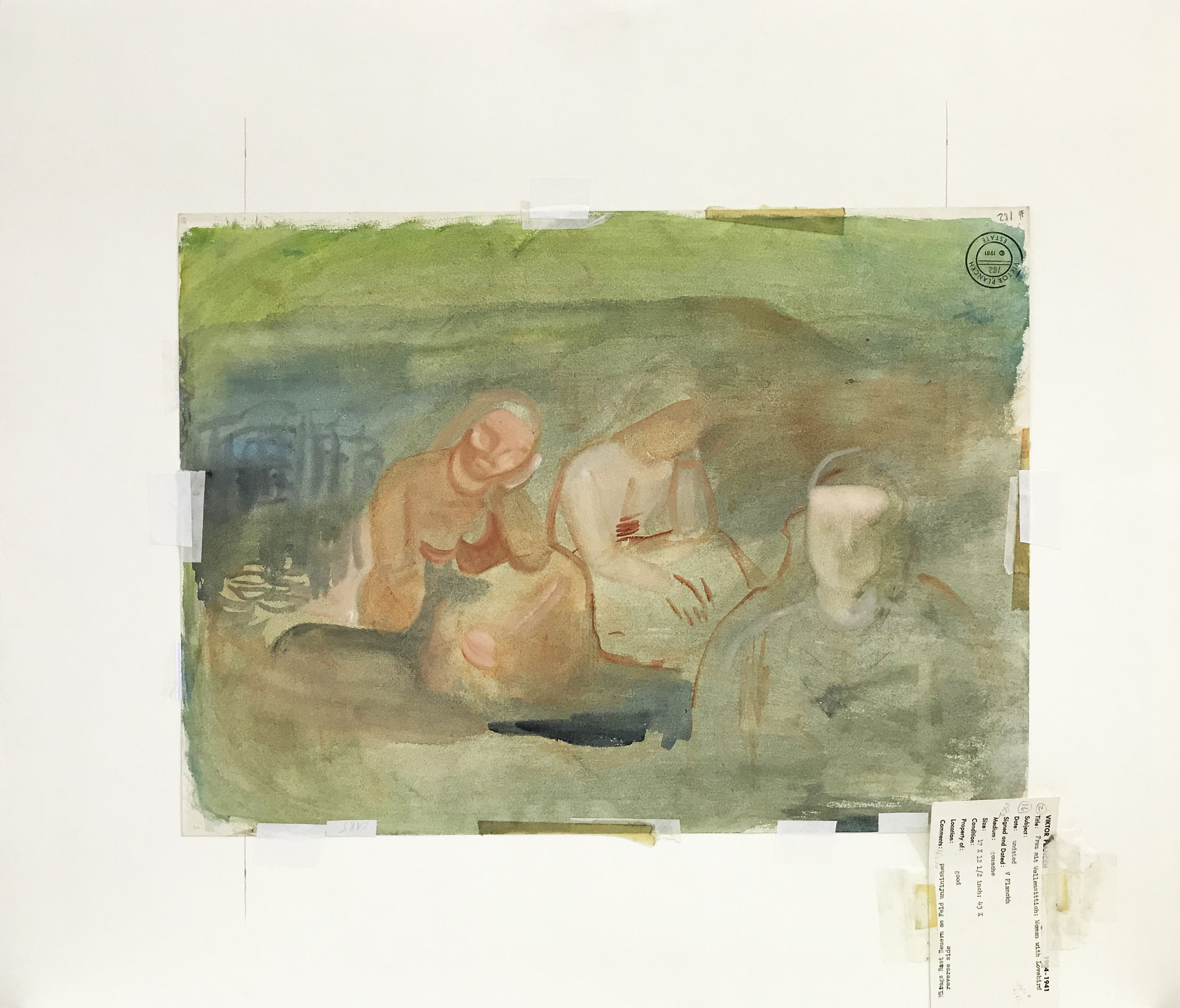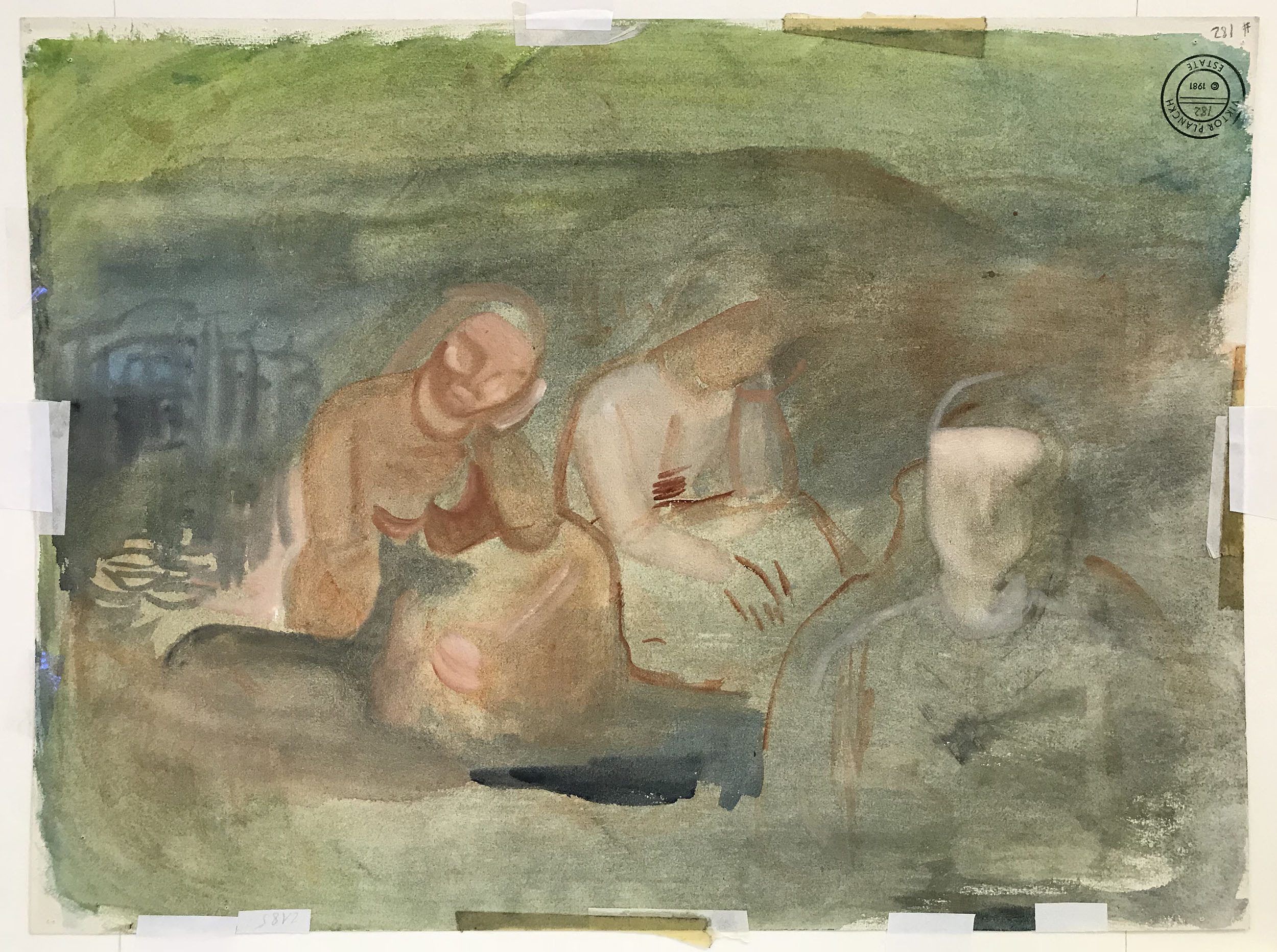 - Verso: Nachlassstempel, Gouachestudie mit drei Frauen