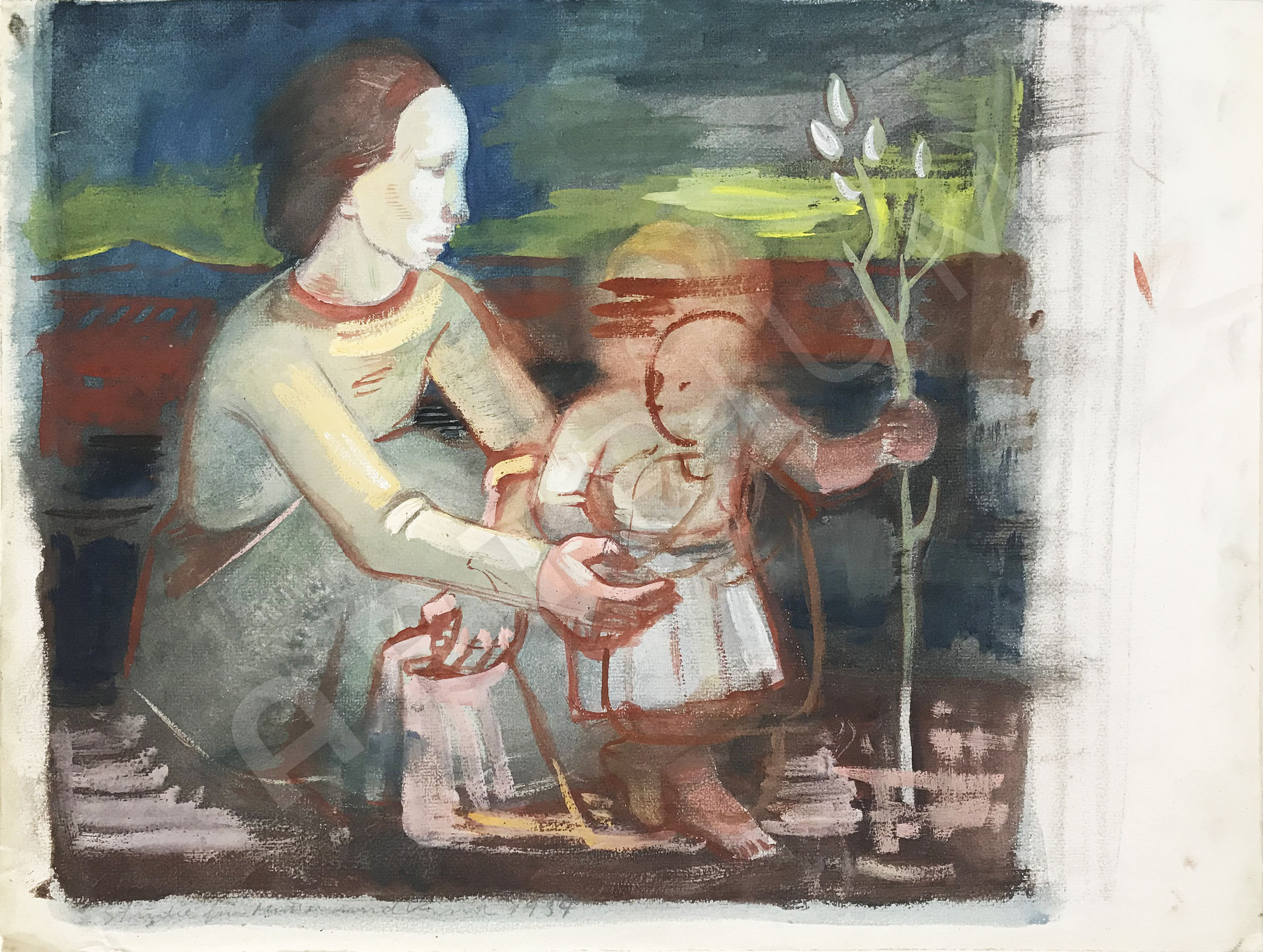 - signiert, datiert und betitelt (mit Bleistift): "V.Planckh, Studie für Mtter und Kind 1934"