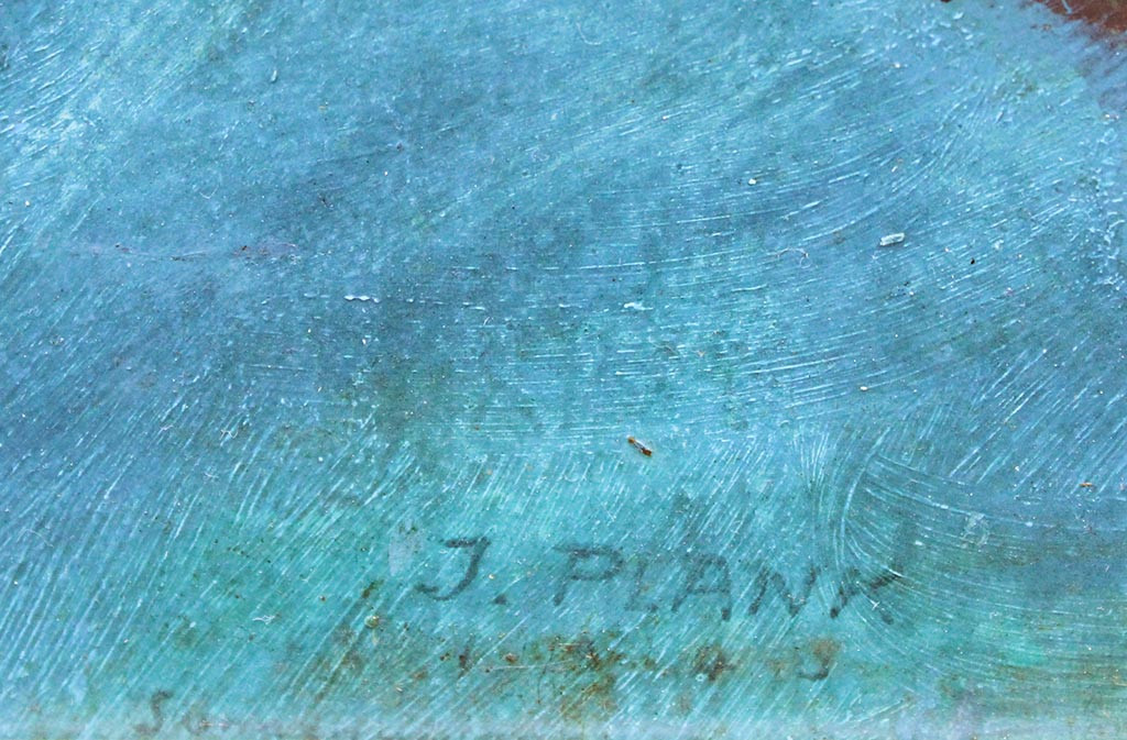 • signed and inscribed: "Josef Plank, Sonnenaufgang am Zechner in Tirol" (transl. Sunrise at the Zechner in Tyrol)