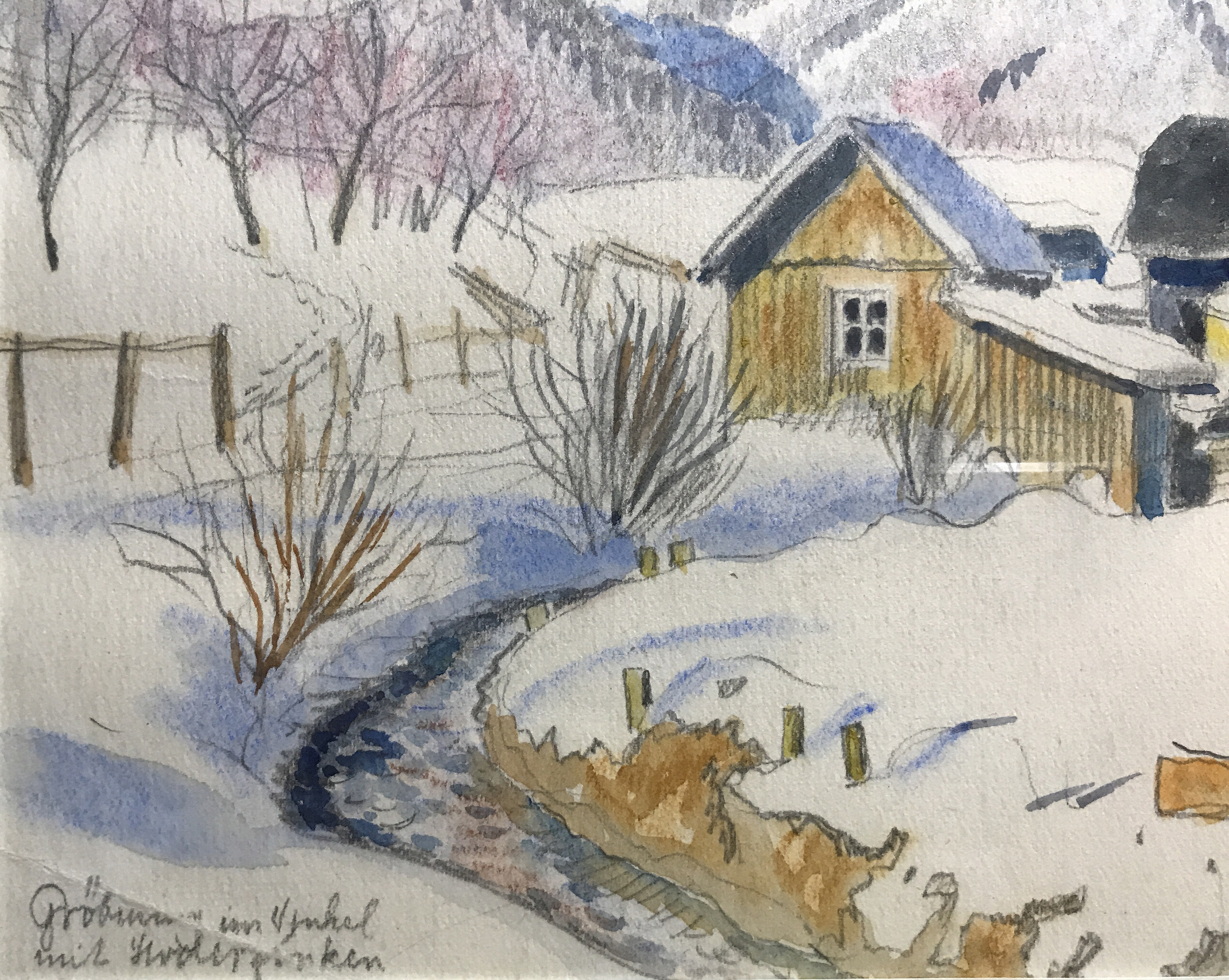 Aquarell, Bleistift auf Papier