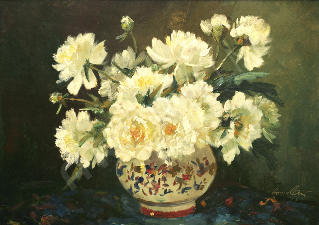 Franz Homolatsch Pfingstrosen 1943 Öl auf Holz 50 x 69,5 cm signiert und datiert Zustand: sehr gut, gerahmt, Rahmen beschädigt verkauft Ausgewählte Kunstwerke Zertifikat Versicherte Lieferung 14 Tage Rückgaberecht Sichere Online Zahlung Über den Künstler Franz Homolatsch * 1886 - † 1952 Zurück zur Übersicht