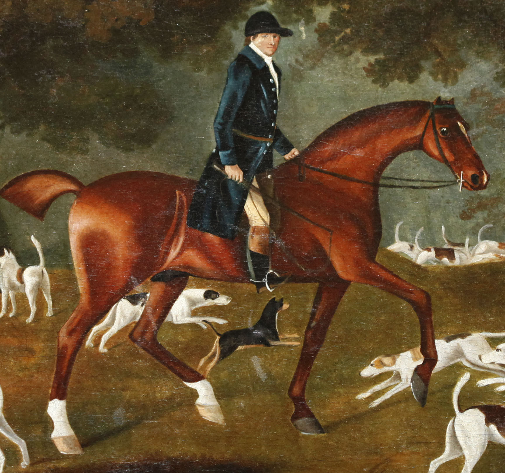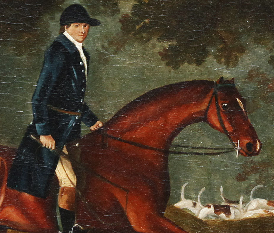 - Verso: Etikett: Österreich-Haus Pal. Palffy/Gem:Reiter mit Rüden/Inv Nr. 1501, Öl/Lwd. 71 x 91 cm/Eing. 11.3.64