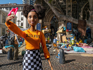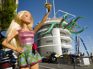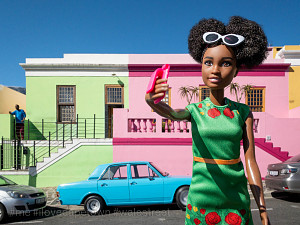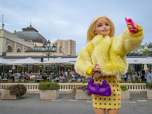 Die konzeptuelle Fotografin Kathrin Hoyos macht Barbie zur Protagonistin ihrer Fotoserie #me, in der sie diesen Zusammenhang der jüngeren Lifestyle-Standards, der Konsumkultur und der Medienbedingungen der paradoxen Social Media Individualität anschaulich macht. So lebendig sie nach Jahrzehnten der Präsenz für uns wirken mag, so bleibt Barbie doch eine Puppe mit vorgeformtem Lächeln, aus Kunststoff und mit steifen Gliedern, die genau weiß: wer heute neidvolle Blicke auf sich ziehen will, kann nicht mehr allein mit Cabrio, Markenaccessoires und langen Beinen im Minirock punkten. Als echtes Jet-Set-Girl sammelt Barbie heute - sei es in Kapstadt, Monte Carlo, Paris, Venedig oder Wien - mit ausgestrecktem Arm in Selfie - Pose Likes und Follower. Die instagramisierten Top-Sights des Globus, die Experiences und Events unseres aufregenden Lebens, sind die Lifestyle-Währung der Gegenwart. Durch Barbie als Darstellungsmittel gelingt der in Südafrika und Monaco lebenden Künstlerin eine durchaus unangenehme Reminiszenz an die mechanische Bereitwilligkeit, mit der wir uns den Prinzipien der Selbstinszenierung unterwerfen und eine Mahnung an die Bestechlichkeit unserer Sinne durch die Darstellung von scheinbar einmaligen Traumstränden, Wahrzeichen, Bergblicken und Begegnungen, für die wir in Wirklichkeit massenhaft und schamlos Schlange stehen müssen.