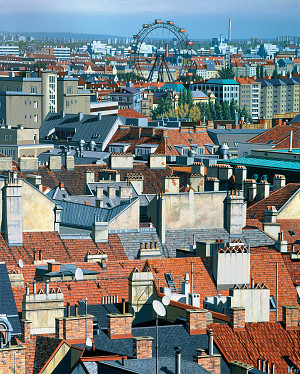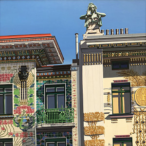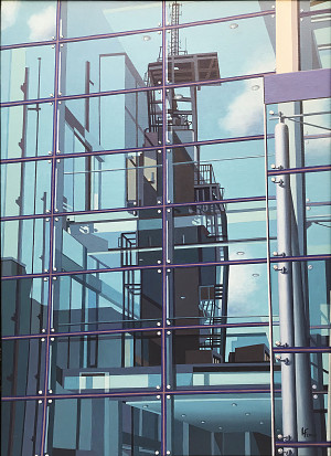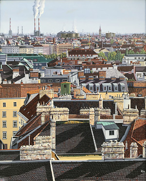 Vertreter des konzeptionellen Fotorealismus. Großstädtische Mobiliarsegmente - Wolkenkratzer, historische Baudenkmäler, Reklametafeln, Hinterhöfe, Fassaden, Dachlandschaften, Feuertreppen, Skulpturen im öffentlichen Raum, Gesimsarchitekturen - aber auch Strukturen der Architektur und der Natur im ländlichen Umfeld sind die Themen, denen sich der Künstler annimmt. Frauendorfer lotet dabei die Möglichkeiten aus, die sich aus einem unkonventionellen Blickwinkel ergeben. Seine markante Wahl der Motivausschnitte und ein bewusster Umgang mit Licht und Schatten zeichnen seine Bilder aus. Sie vermitteln dem Betrachter eine faszinierende Welt, in der die Grenzen von Schein und Wirklichkeit, von Realität und Phantasie aufgehoben scheinen.